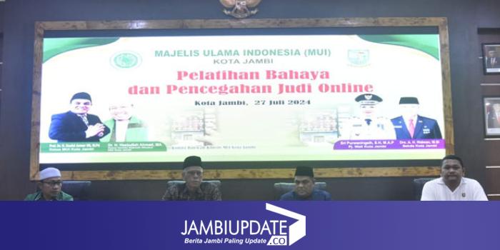 Hal itu terlihat saat pemkot Jambi bersama Komisi Da’wah Khusus Majelis Ulama Indonesia (MUI) Kota Jambi bekerja sama dalam penyelenggaraan Pelatihan Pencegahan Bahaya Judi Online, yang dibuka secara resmi oleh Asisten Setda Kota Jambi Bidang Ekbang Amirullah, mewakili Penjabat (Pj) Walikota Jambi, Sabtu (27/7/2024) pagi.
