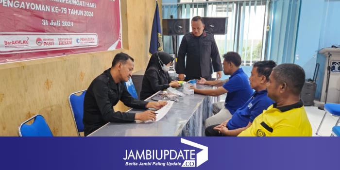 JAMBIUPDATE.CO, JAMBI - Hari Pengayoman atau yang dulu disebut sebagai Hari Karya Dharma Dhika merupakan perayaan terhadap lahirnya Kementerian Hukum dan HAM yang diperingati setiap tahunnya. Tahun ini diperingati Hari Pengayoman ke-79 dengan mengangkat tema “Kementerian Hukum dan HAM Mengabdi Untuk Negeri Menuju Indonesia Emas 2045”. Sebagai bentuk ucapan syukur peringatan ini selalu diwarnai dengan bakti sosial salah satunya ialah dengan pemeriksaan kesehatan gratis.
