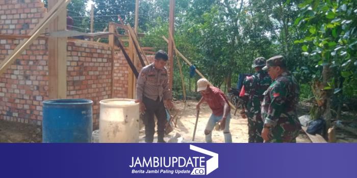 Tampak, dalam pembangunam rumah full permanen milik janda lansia tersebut,Satgas TMMD ke 121 Kodim/Jambi, bersama polri dan Masyarakat bahu membahu berjibaku dalam membangunnya.