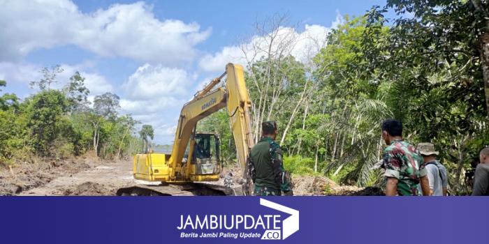 JAMBIUPDATE.CO, JAMBI - Kasdim 0415/Jambi Letkol Kav Muslim Rahim, meninjau pembukaan jalan program TMMD ke 121 di Desa Suka Maju, Kecamatan Mestong, Kabupaten Muaro Jambi, Sabtu (3/8/2024).