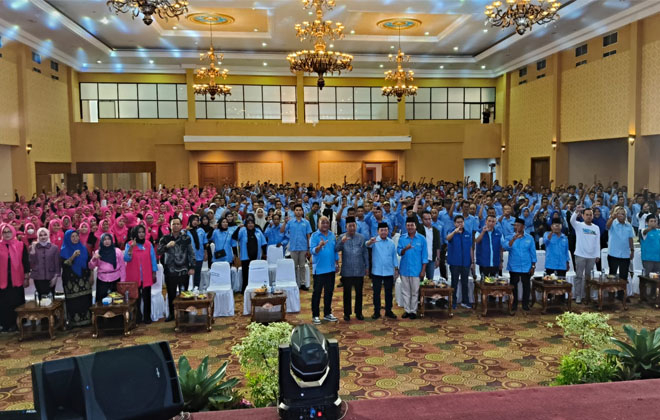 JAMBIUPDATE.CO, JAMBI- Pasangan patahana calon Gubernur dan Wakil Gubernur Jambi Al Haris dan Abdullah Sani secara resmi melantik 1.200 orang tim pemenangan Haris-Sani untuk Kabupaten Muaro Jambi di Ratu Convention Center (RCC), Minggu (04/08/2024).