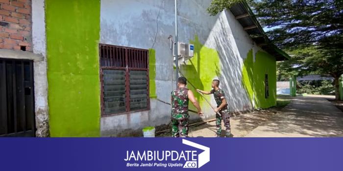JAMBIUPDATE.CO, JAMBI - Guna mempercantik bangunan, Satgas TMMD ke 121 Kodim 0415 Jambi mengecat bangunan kantor Desa Suka Maju, Kecamatan Mestong, Kabupaten Muaro Jambi.