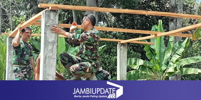 JAMBIUPDATE CO, JAMBI - Satuan Tugas (Satgas) TNI Manunggal Membangun Desa (TMMD) Kodim 0415 JAMBI, bersama masyarakat melakukan pembangunan pos keamanan lingkungan (poskamling) untuk keamanan dan ketertiban lingkungan, Senin (5/8/2024).