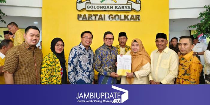 Surat Rekomendasi diberikan langsung oleh Wakil Ketua Umum DPP Golkar Ahmad Doli Kurnia. Hadir juga dalam penyerahan dukungan itu sejumlah pengurus DPD I Golkar Provinsi Jambi.