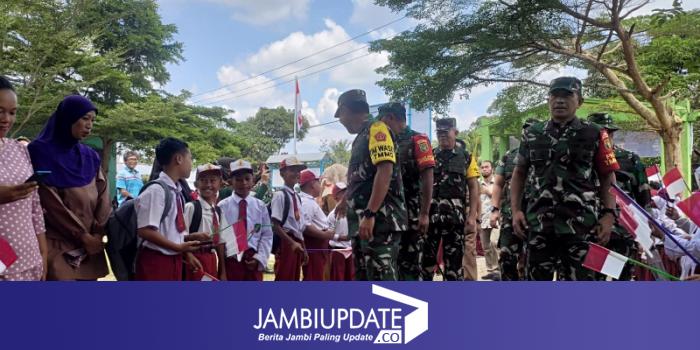 JAMBIUPDATE.CO, JAMBI - Antusias dan Keceriaan anak-anak dalam menyambut kedatangan tim pengawas dan evaluasi (Wasev) dalam program TMMD ke 121 Kodim 0415/Jambi di Desa Suka Maju.