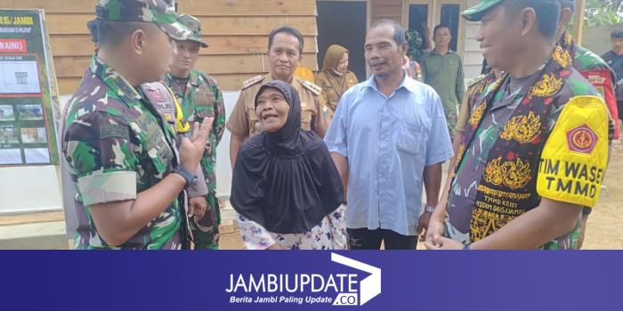 Terpantau, saat peninjauan di RTLH yang berada di RT 09 Desa Suka Maju, sambutan hangat diberikan oleh Nenek Waini ke baik Tim Wasev, Danrem 042/Gapu dan Dandim 0415/Jambi.(*)