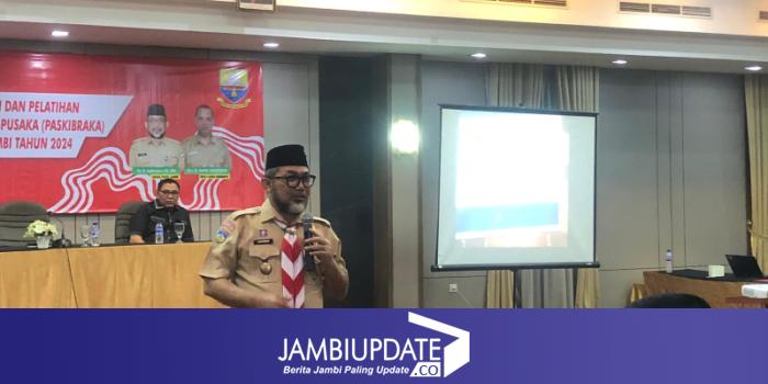 JAMBIUPDATE.CO, JAMBI - Ketua Kwarda Gerakan Pramuka Jambi Dr. H. Sudirman,SH,MH memberikan materi wawasan kebangsaan kepada 54 Calon Paskibraka (Capaska) Provinsi Jambi. Judul yang diangkat Kakwarda adalah Revolusi Mental dalam hal ini pada kegiatan Pramuka.