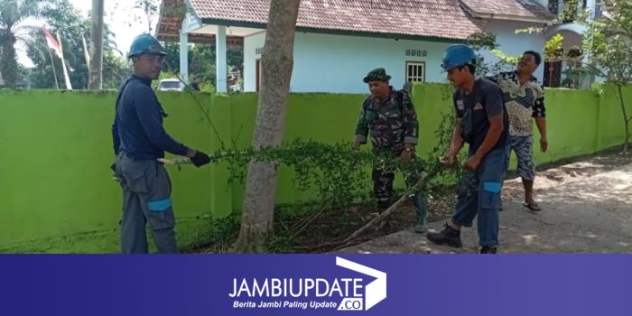 JAMBIUPDATE CO, JAMBI - Satgas TMMD ke 121 Kodim 0415/Jambi bersama aparatur pemerintah desa, bergotong royong membersihkan Kantor Desa Suka Maju, Kecamatan Mestong, Kabupaten Muaro Jambi, Kamis (8/8/2024).