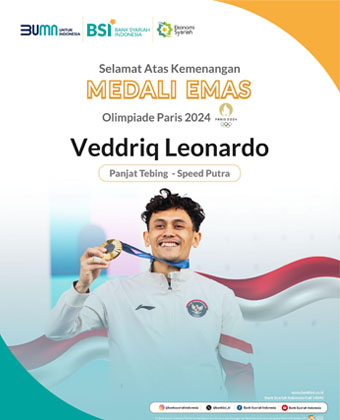 JAMBIUPDATE.CO, Jakarta, 9 Agustus 2023 - PT Bank Syariah Indonesia Tbk (BSI) akan memberikan apresiasi bagi atlet panjat tebing Indonesia yaitu Veddriq Leonardo, karena mengharumkan nama bangsa dan mengibarkan Sang Merah Putih dengan meraih medali emas di Olimpiade Paris 2024.