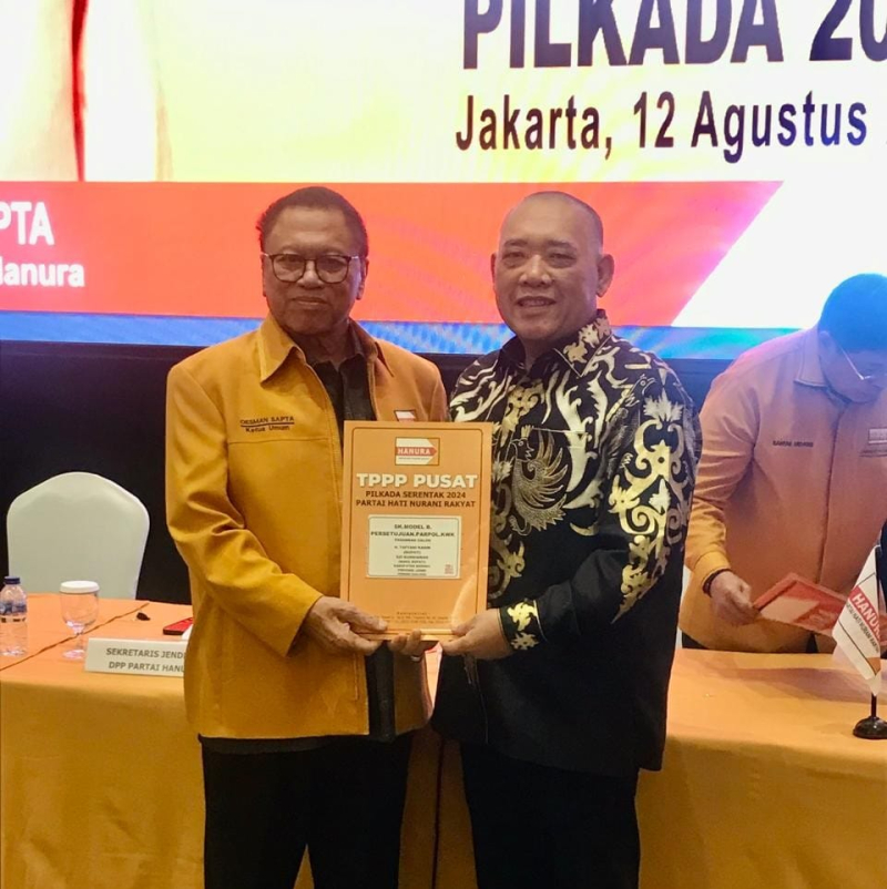 JAMBIUPDATE.CO, KERINCI- Tafyani Kasim-Ezi Kurniawan resmi menerima rekomendasi dari pantai Hati Nurani Rakyat (Hanura). Penyerahan rekomendasi dilakukan langsung oleh Ketua Umum Hanura di Jakarta, Senin (12/8/2024).