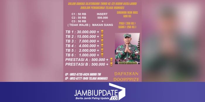 Untuk hadiah tidak main-main, selain mendapatkan uang puluhan juta rupiah, pemenang juga mendapatkan piala dari Dandim 0415/Jambi Letkol Inf Yoga Cahya Prasetya.