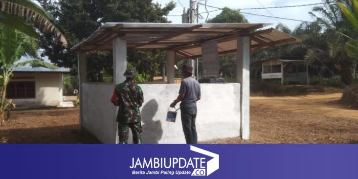PPasiter Kodim 0415/Jambi, Mayor Arh M.Nur Eriyanto, mebenarkan pembangunan dan perehaban poskamling yang dikerjakan oleh pasukan TMMD dan masyarakat.