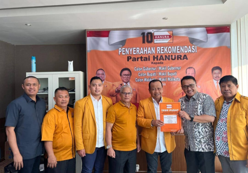 Surat Keputusan Persetujuan dukungan Hanura diserahkan Ketua TPPP DPP Hanura Mayjen Purn Syafrizal di Jakarta Rabu (14/8). SK yang ditandatangani Ketua Umum Dr Oesman Sapta dan Sekjen Benny Rhamdani ini sebagai bukti otentik kader Hanura wajib memperjuangkan Alfin-Azhar merebut kemenangan Pilwako Sungaipenuh.