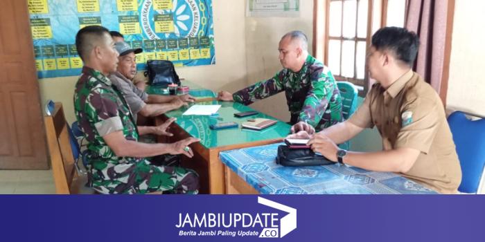 JAMBIUPDATE.CO, JAMBI - Satgas TMMD ke 121 Kodim 0415/Jambi bersama Aparat Pemerintah Desa Suka Maju berdiskusi dalam rangka menyambut HUT RI ke 79, Selasa (13/8/2024).