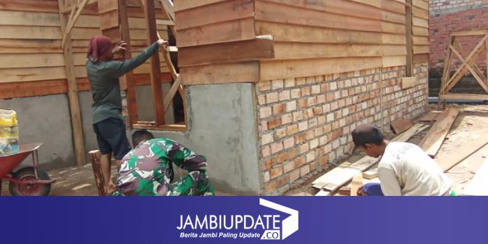 Pabung Kodim 0415/Jambi, Mayor Inf Beni, menerangkan, saat ini pada pembangunan rumah layak huni yang berada di desa Muaro Sebapo, masuk tahap pemasangan atap