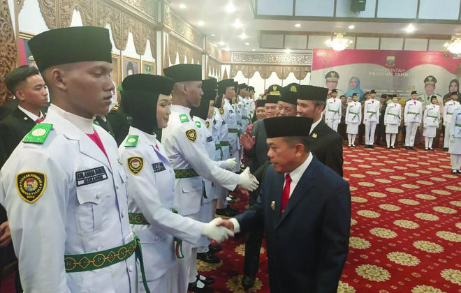 JAMBIUPDATE.CO, JAMBI- Sebanyak 54 putera-puteri terbaik Jambi dikukuhkan oleh Gubernur Jambi Al Haris sebagai Pasukan Pengibaran Bendera Pusaka (Paskibraka) Merah Putih Tingkat Provinsi Jambi.