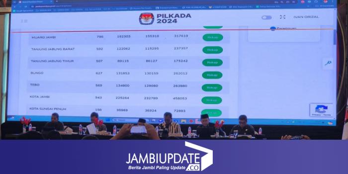 JAMBIUPDATE.CO, JAMBI- Komisi Pemilihan Umum (KPU) Provinsi Jambi menetapkan 2.698.805 Daftar Pemilih Sementara (DPS) untuk Pemilihan Kepala Daerah (Pilkada). Penetapan dilakukan dalam rapat pleno rekapitulasi DPS Pilkada serentak 2024 di Swiss-Belhotel, Kota Jambi, Jumat (16/8/2024).