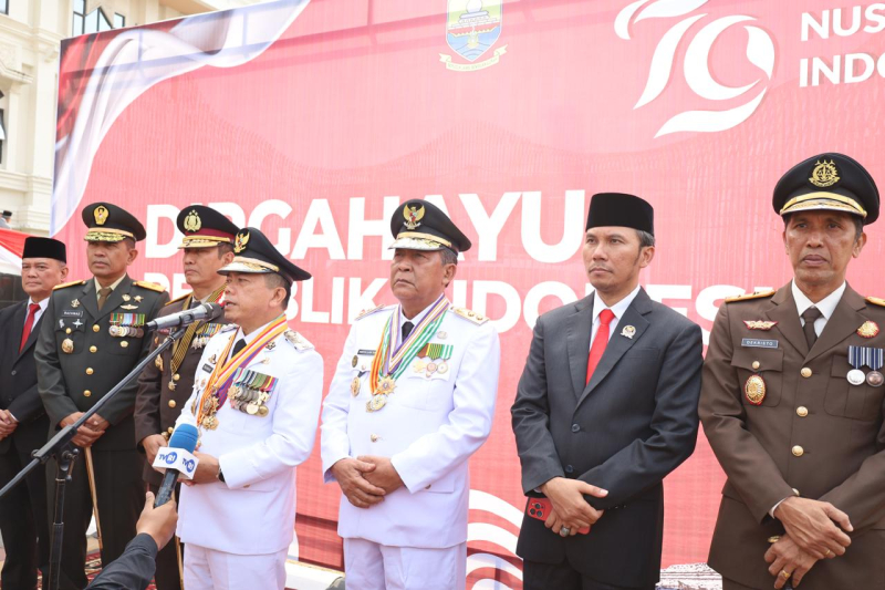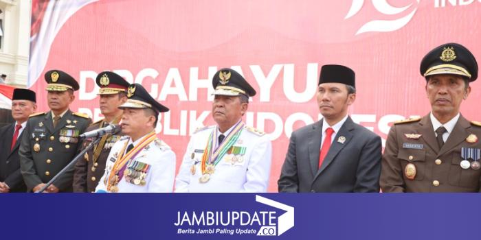 JAMBIUPDATE.CO, JAMBI- Gubernur Jambi Al Haris bertugas sebagai Inspektur Upacara dalam momen sakral HUT RI ke-79 di Kantor Gubernur Jambi, Sabtu (17/8/2024).