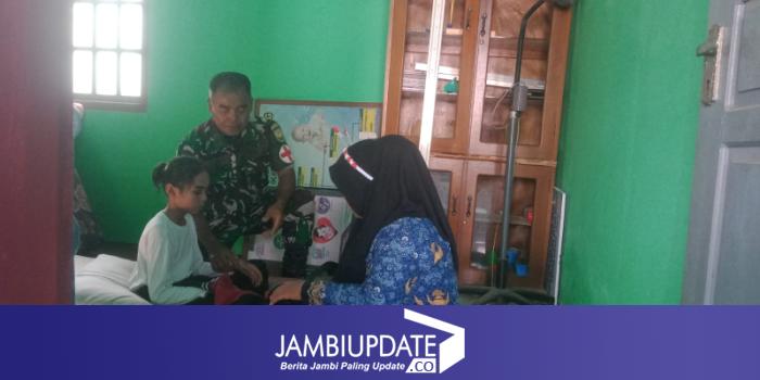 JAMBIUPDATE.CO, JAMBI - Satgas TMMD ke 121 Kodim 0415/Jambi membantu siswi SDN di Desa Maju yang kelelahan saat melaksanakan upacara HUT RI ke 79.