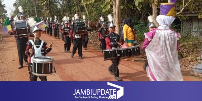 JAMBIUPDATE.CO, JAMBI - Drumband SDN 96 Desa Suka Maju, memeriahkan kegiatan jalan santai dan senam sehat, pada serangkaian HUT RI ke 79 dan program TMMD ke 121 Kodim 0415/Jambi.