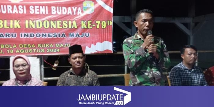 JAMBIUPDATE.CO, JAMBI - Beragam macam pertunjukan seni budaya ditampilkan masyarakat Desa Suka Maju, di malam Inagurasi Dirgahayu Republik Indonesia ke 79. Di antaranya, Pertunjukan keahlian Double Stik dan seni bela diri dari Satgas TMMD ke 121 Kodim 0415/Jambi dan tari kolosal dengan judul mari jago bumi hidupkan anak negeri.