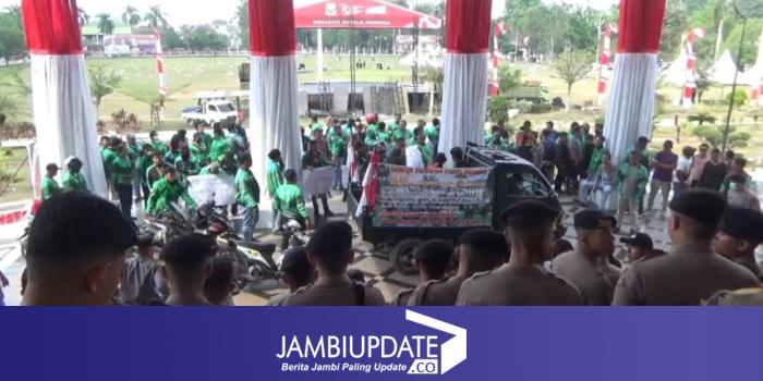 JAMBIUPDATE.CO, JAMBI- Pasca berunjuk rasa di kantor Grab beberapa Hari lalu, ratusan pengemudi Ojek Online (Ojol) Kota Jambi dari Aplikasi Grab berunjuk rasa di depan Kantor Gubernur Jambi, Kamis (22/08/2024).