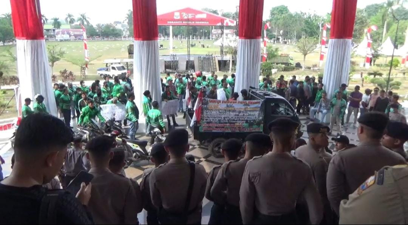 Salah satu orator aksi mengatakan bahwa kedatangan ratusan Ojol Kota Jambi ini untuk menyampaikan keresahan dan aspirasi atas kerugian yang selama ini dirasakan.