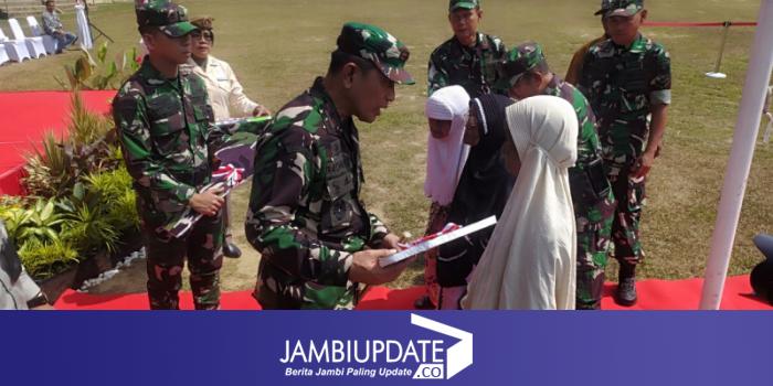Pemberian bantuan tersebut dilakukan secara simbolis oleh Danrem 042/Gapu, Brigjen TNI Rachmad, di lapangan sepak bola bajaw, desa Suma Maju.