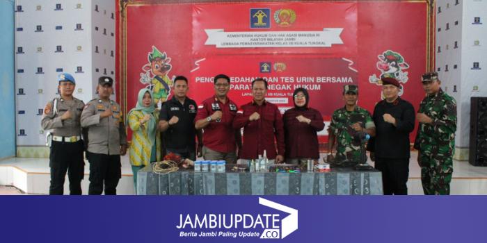 JAMBIUPDATE.CO, JAMBI - Dipimpin langsung oleh Adnan selaku Kakanwil Kemenkumham Jambi dan didampingi oleh Kadivpas Lili dan Gusti selaku kalapas, Lapas Kuala Tungkal menggelar penggeledahan kamar hunian dan melakukan tes urin, Kamis (22/08).