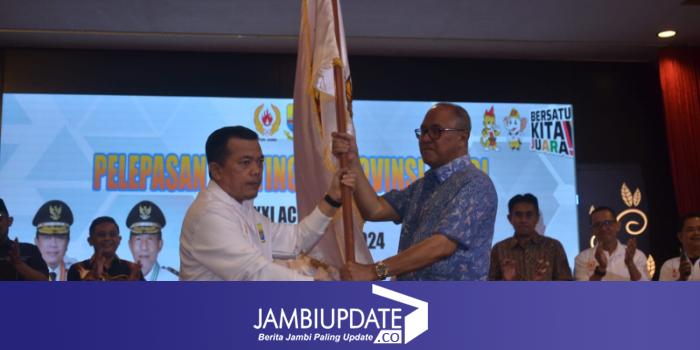 JAMBIUPDATE.CO, JAMBI- 217 atlet dari 34 cabang olahraga kontingen Jambi yang akan berlaga di PON XXI Aceh-Sumut 2024 dilepas secara resmi oleh Gubernur Jambi, Al Haris di Aula Rumah Dinas Gubernur Jambi pada Sabtu malam 24 Agustus 2024.