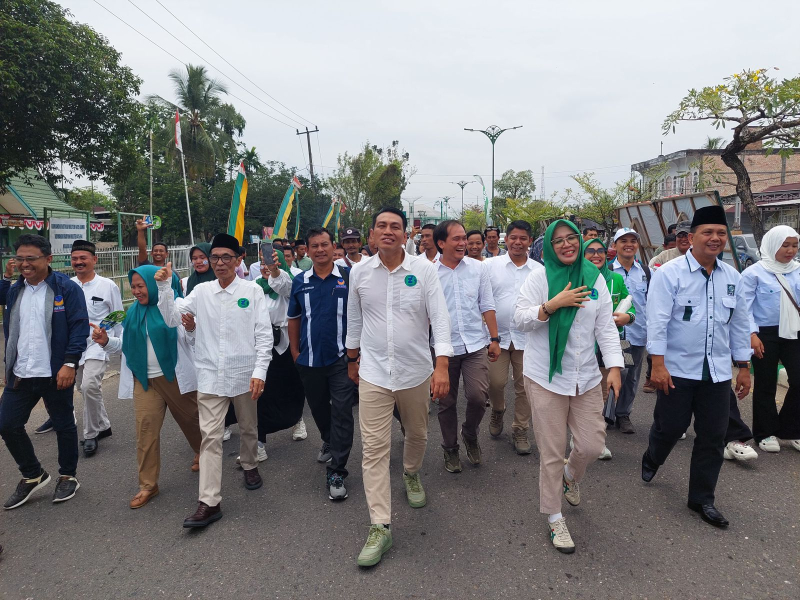 JAMBIUPDATE.CO, BATANGHARI- Pasangan Calon Bupati Batanghari Fadhil - Bakhtiar mendatangi Gedung KPU Kabupaten Batanghari. Kedatangan pasangan dengan jargon yang sama pada Pilkada lalu yakni FB didampingi oleh Pimpinan Partai Politik dan Simpatisan Fadhil Bakhtiar, tak hanya itu tampak juga Zulva Fadhil dan Nuraini Bakhtiar setia mendampingi suami. Rabu (28/08).
