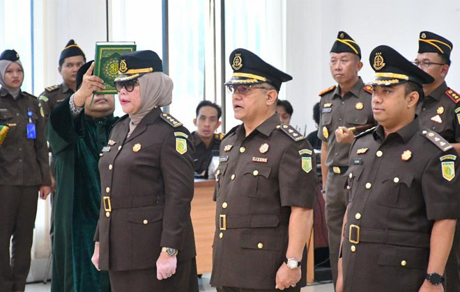 JAMBIUPDATE.CO, JAMBI- Kepala Kejaksaan Tinggi Jambi, Hermon Dekristo melantik dan mengambil sumpah jabatan 5 pejabat eselon III di wilayah hukum Kejaksaan Tinggi Jambi
