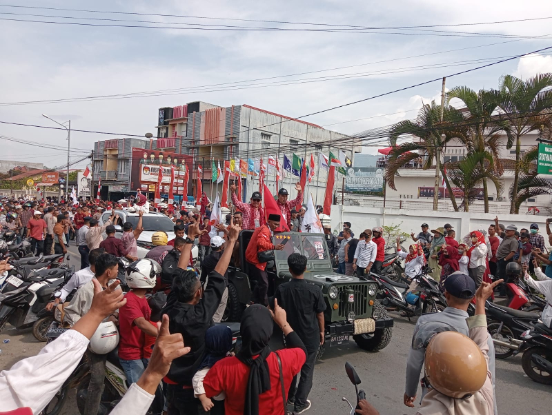 JAMBIUPDATE.CO, SUNGAIPENUH- Ribuan massa simpatisan layaknya lautan manusia penuhi jalan Pancasila Desa Lawang Agung untuk mengantar Pasangan Calon Walikota dan Wakil Walikota Sungai Penuh, Ahmadi Zubir dan Ferry Satria (AZFER) mendaftar ke KPUD Sungai Penuh.