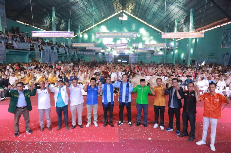Sementara itu naskah dukungan dari partai politik pengusung pasangan JADI dibacakan oleh ketua tim partai koalisi H. Pardinan yang diikuti oleh 10 ketua partai politik pengusung, yakni Nasem, Demokrat, Gerindra, Hanura, PPP, Perindo, PBB, PKN, Gelora dan Buruh.