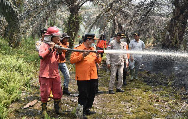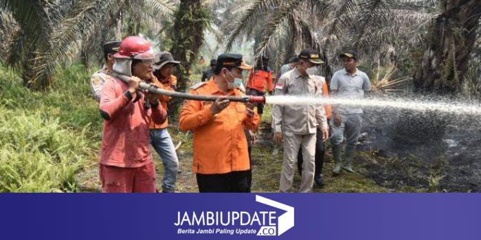 Dokumentasi Pj Bupati Sarolangun Bachril Bakri bersama tim satgas karhutla, saat memadamkan api dengan penyemprotan air beberapa waktu lalu.