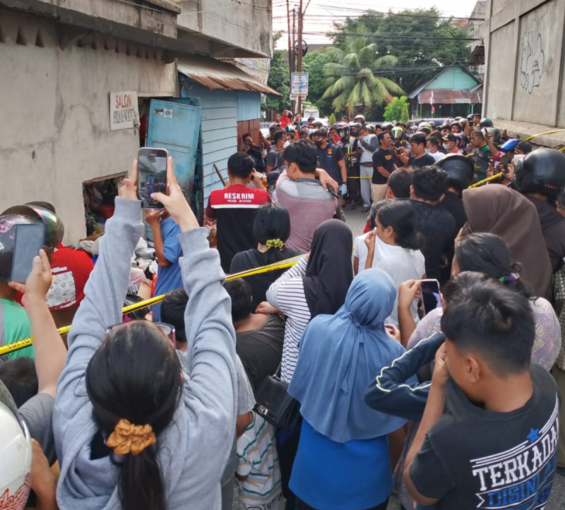 Berdasarkan pantauan Jambi Ekspres di lapangan, banyak warga memadati TKP yang sudah di pasang garis polisi atau police line.