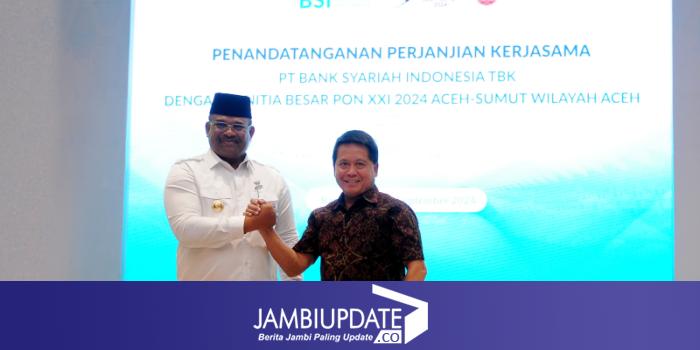 JAMBIUPDATE.CO,- Banda Aceh, 10 September 2024 — PT Bank Syariah Indonesia Tbk (BSI) berkomitmen untuk mendukung Pemerintah Provinsi (Pemprov) Aceh dalam mendorong dan memajukan sektor olahraga. Penyelenggaraan Pekan Olahraga Nasional (PON) XXI di Aceh menjadi batu lonjatan dalam meningkatkan minat dan prestasi olahraga di Bumi Serambi Mekah.