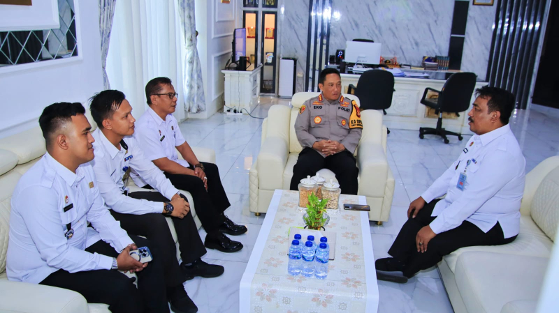 Kepala Bapas yang didampingi Kasi BKD Nasrul, S.Pd, Kasubsi Bimkemas BKA Ilham Kurniadi, S.Tr.Pas, Kasubsi Bimkemas BKD Idham Imam Seputra, S.Tr.Pas dan Kasubsi Registrasi BKD Bastanta Sena P. Surbakti, S.Tr.Pas, diterima langsung oleh Kapolresta Jambi Kombes Pol Eko Wahyudi S.I.K., M.H.