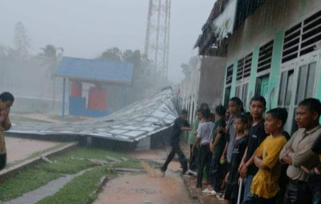 Tak hanya itu, atap asrama pondok pesantren Ummul Masakin, yang lokasinya juga di Kampung Pulau ikut roboh akibat diterjang angin puting beliung. Kejadian itu diakui camat Pemayung, Firdaus. "Iya, kejadian tadi sore. Sekarang Saya di lokasi," akunya.