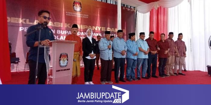 Ketua KPU Sarolangun Ahmad Mujaddid tampak memimpin langsung pembacaan dan Pengucapan Deklarasi Damai oleh Lima Pasangan Calon Bupati dan Wakil Bupati Sarolangun, dan dilakukan penandatanganan Deklarasi Damai oleh pasangan Calon Bupati dan Wakil Bupati Sarolangun, Ketua KPU Sarolangun, Ketua Bawaslu Sarolangun dan jajaran forkompinda Sarolangun.