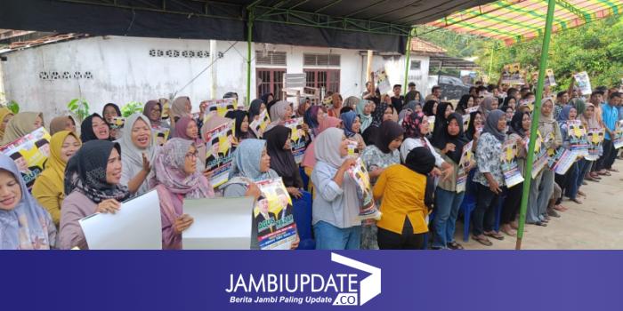 JAMBIUPDATE.CO, MUARATEBO- Sorakan dukungan emak-emak bergemuruh kencang saat menyambut kunjungan Paslon Calon Bupati Agus Rubyanto dan Calon Wakil Bupati Nazar Efendi di Kelurahan Sungai Bengkal Kecamatan Tebo Ilir.