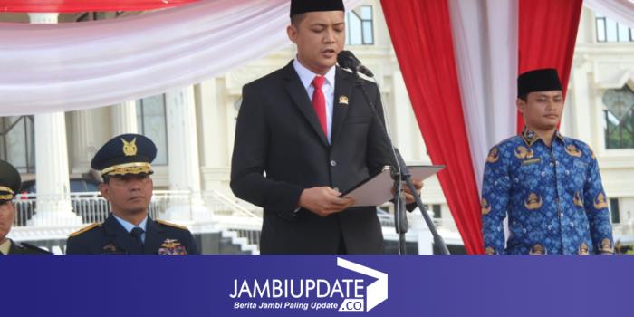 JAMBIUPDATE.CO, JAMBI- Ketua Sementara DPRD Provinsi Jambi, M. Hafiz Fattah membacakan Ikrar Kesaktian Pancasila dalam upacara peringatan Hari Kesaktian Pancasila 1 Oktober 2024, di halaman Kantor Gubernur Jambi, Selasa (1/10).