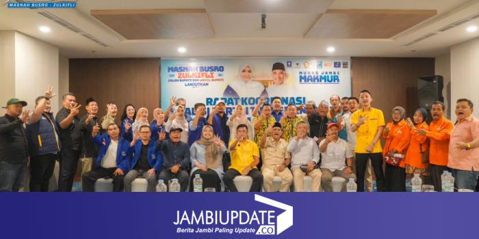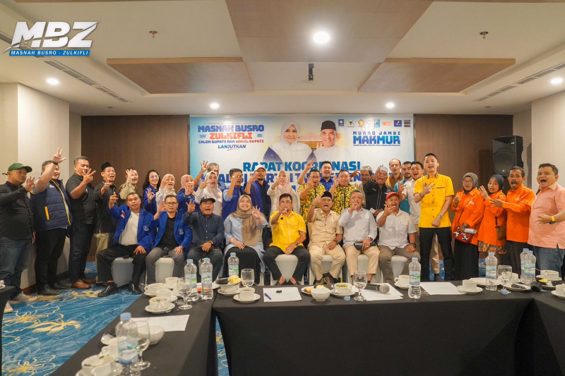 JAMBIUPDATE.CO, JAMBI-Tim pemenangan koalisi partai pasangan Masnah Busro - Zulkifli (MBZ) pada Selasa (01/10/24) lakukan pertemuan internal. Partai Golkar, PAN, Partai Gerindra, Partai Umat, Partai Prima, Partai Buruh, Partai Gelora, dan Partai Masyumi berkumpul untuk mematangkan strategi pemenangan pasangan MBZ dalam kontestasi Pilbup Muaro Jambi.