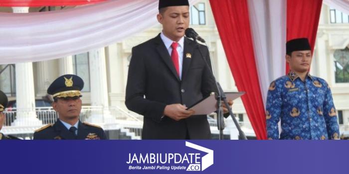 JAMBIUPDATE.CO, JAMBI – Ketua Sementara DPRD Provinsi Jambi, M. Hafiz Fattah membacakan Ikrar Kesaktian Pancasila dalam upacara peringatan Hari Kesaktian Pancasila 1 Oktober 2024, di halaman Kantor Gubernur Jambi, Selasa (1/10).
