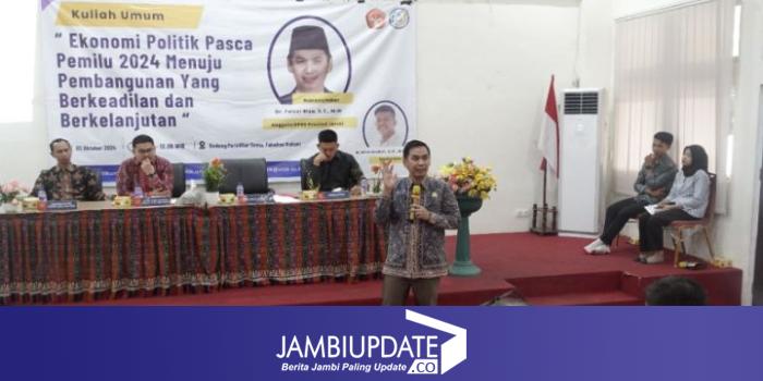 JAMBIUPDATE.CO, JAMBI – Anggota DPRD Provinsi Jambi, Faizal Riza menjadi narasumber dalam kuliah umum yang digelar oleh Program Studi Ilmu Politik, Jurusan Ilmu Sosial dan Ilmu Politik, Universitas Jambi, Rabu, (2/10).