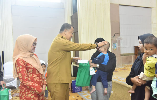 Usai membuka kegiatan itu, Sekda A Ridwan bersama Ketua DWP Sri Hartati, menyerahkan bantuan secara simbolis kepada 10 orang tua yang anak-anaknya dalam kategori stunting.