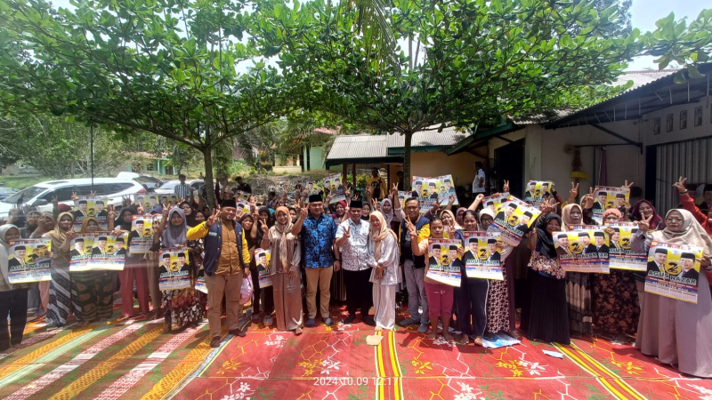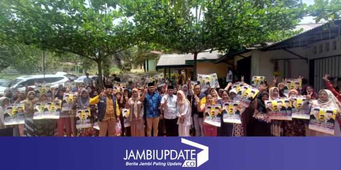 JAMBIUPDATE.CO, TEBO - Ratusan mak-mak dengan penuh semangat saat menyambut Paslon Bupati dan Wakil Bupati Nomor Urut 2, Agus Rubyanto dan Nazar Efendi saat berkunjung di SP 1 Kecamatan Serai Serumpun.