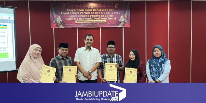 JAMBIUPDATE.CO, JAMBI- Komisi Pemilihan Umum (KPU) Kota Jambi menetapkan jadwal dan tim perumus debat kandidat calon walikota dan calon wakil walikota Jambi dalam Pemilihan Kepala Daerah (Pilkada) Pilkada serentak 2024.