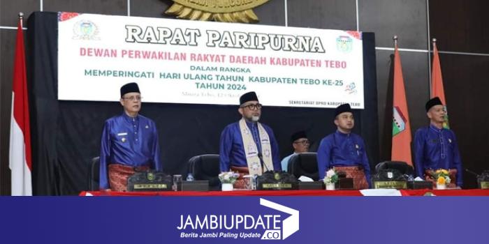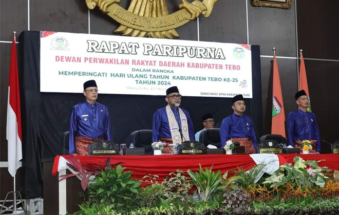 Hal tersebut dikemukakannya saat menghadiri Rapat Paripurna DPRD Kabupaten Tebo Dalam Rangka Hari Ulang Tahun Ke-25 Kabupaten Tebo, bertempat di Aula Gedung DPRD Kabupaten Tebo, Sabtu (12/10/2024).