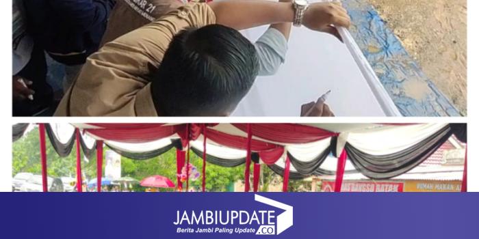 JAMBIUPDATE.CO, MUARASABAK - Waktu sudah dekat, rakyat ingin bahagia, tentukan sikap nyata, tertuju kepada pemimpin yang tepat, bahagia bersama untuk kemenangan Tanjabtim lima tahun kedepan, membentang diatas kain putih sepanjang 21 meter, massa tanda tangani fakta integritas siap mencoblos di frekuensi 21, di kantor DPC HBB Tanjabtim, desa Rantau Karya - Geragai, pada Minggu (13/10).